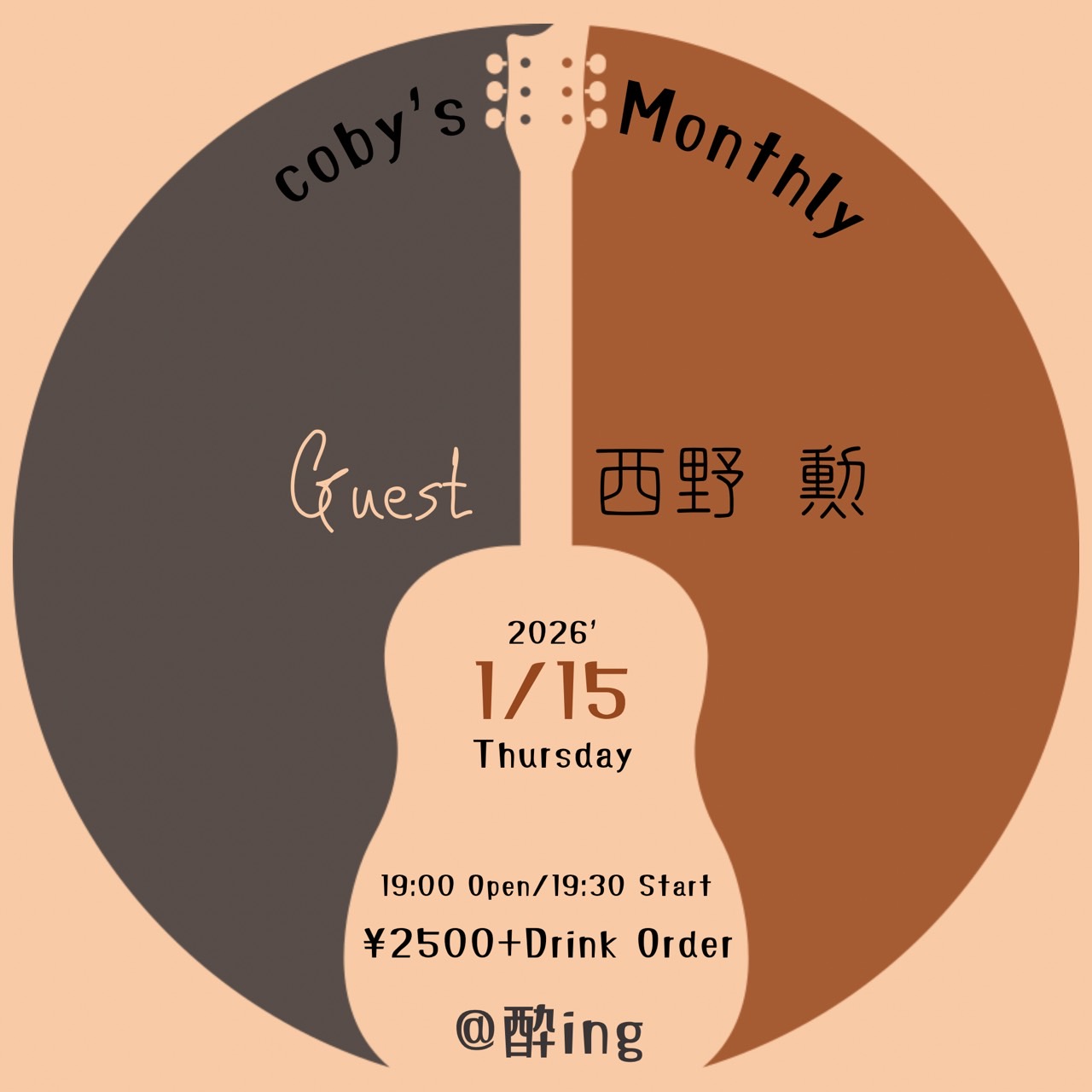 事前にLINE、メール、お電話などででご予約いただいたお客さまはお好きな席をキープいたします。ライブがある日も22:30以降は通常チャージ(¥800)になります。 1月15日(木) coby’s Monthly coby (vo, gt), 西野勲(vo, gt) Open 19:00 Start 19:30 Charge ¥2... -